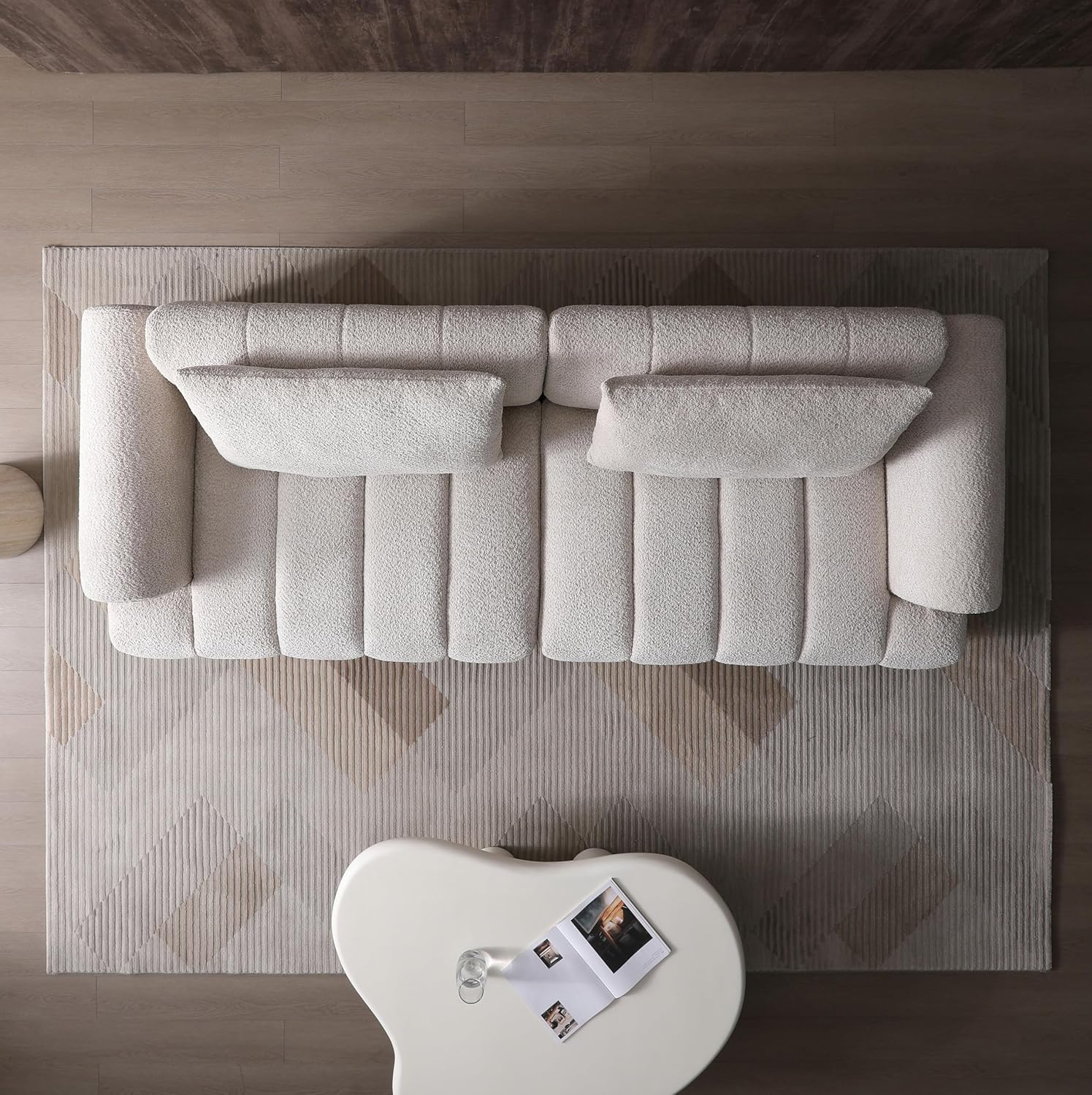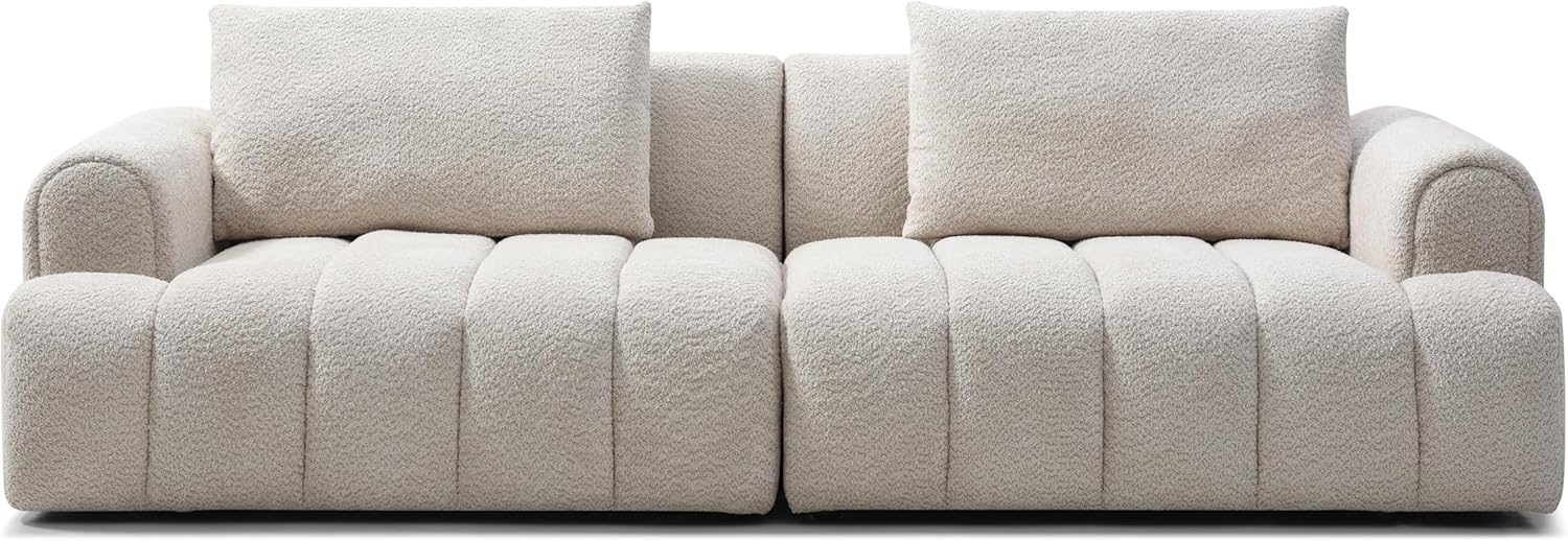Write an article in French about: 100″ Modular Combination Sofa Modern Minimalist Sectional Sofa Teddy Velvet Material with 2 Pillows, Large Sofas for Living Room/Office Cloud Sofas(Teddy + Beige) In English