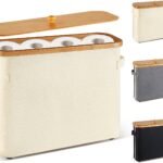 Toilet Paper Storage Basket with Lid and Handle for Bathroom, Bamboo Collapsible Toilet Paper Holder Storage with Non-Slip Bottom ,Extra Toilet Roll Storage, Beige