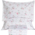 QSH Floral Queen Size Sheet Sets – Shabby Vintage Chic Rose Flower 100% Cotton Printed Bedding Sheets Queen Size Bed Extra Soft and Breathable 4pcs Queen Deep Pocket Sheet Set