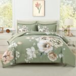 Floral Comforters Queen Size 7 Pieces Botanical Green Flower Bed in a Bag Ulter Soft Microfiber Bedding Set, Lightweight Bed Comforter Set with Sheets for All Season (Green, Queen)