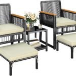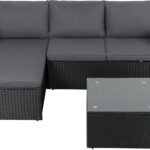 EAST OAK 4-Piece Plaza Patio Furniture Set, Outdoor Furniture for Balcony, Poolside, and Yard, with Thick Cushion Sofa and Coffee Table, Modern Patio Conversation Set, Black & Grey