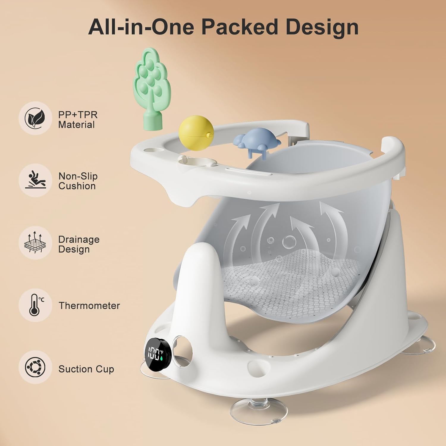 Write an article in French about: Baby Bath Seat for Babies 6 Months & Up – Bathtub Seats for Babies Sitting Up with Rinse Cup, Non-Slip, Comfortable, Infant Bath Essentials, Gray In English