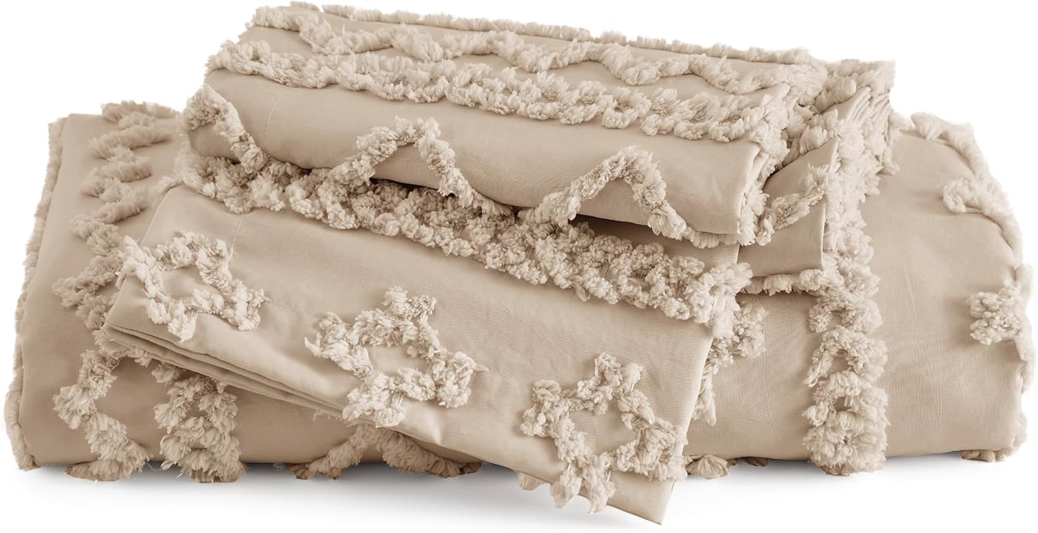 Write an article in French about: Bedsure Boho Duvet Cover King Size – Tufted King Duvet Cover Set for All Seasons, 3 Pieces Soft Shabby Chic Embroidery Boho Bedding, Comforter Not Included (Khaki, 104″ x 90″) In English