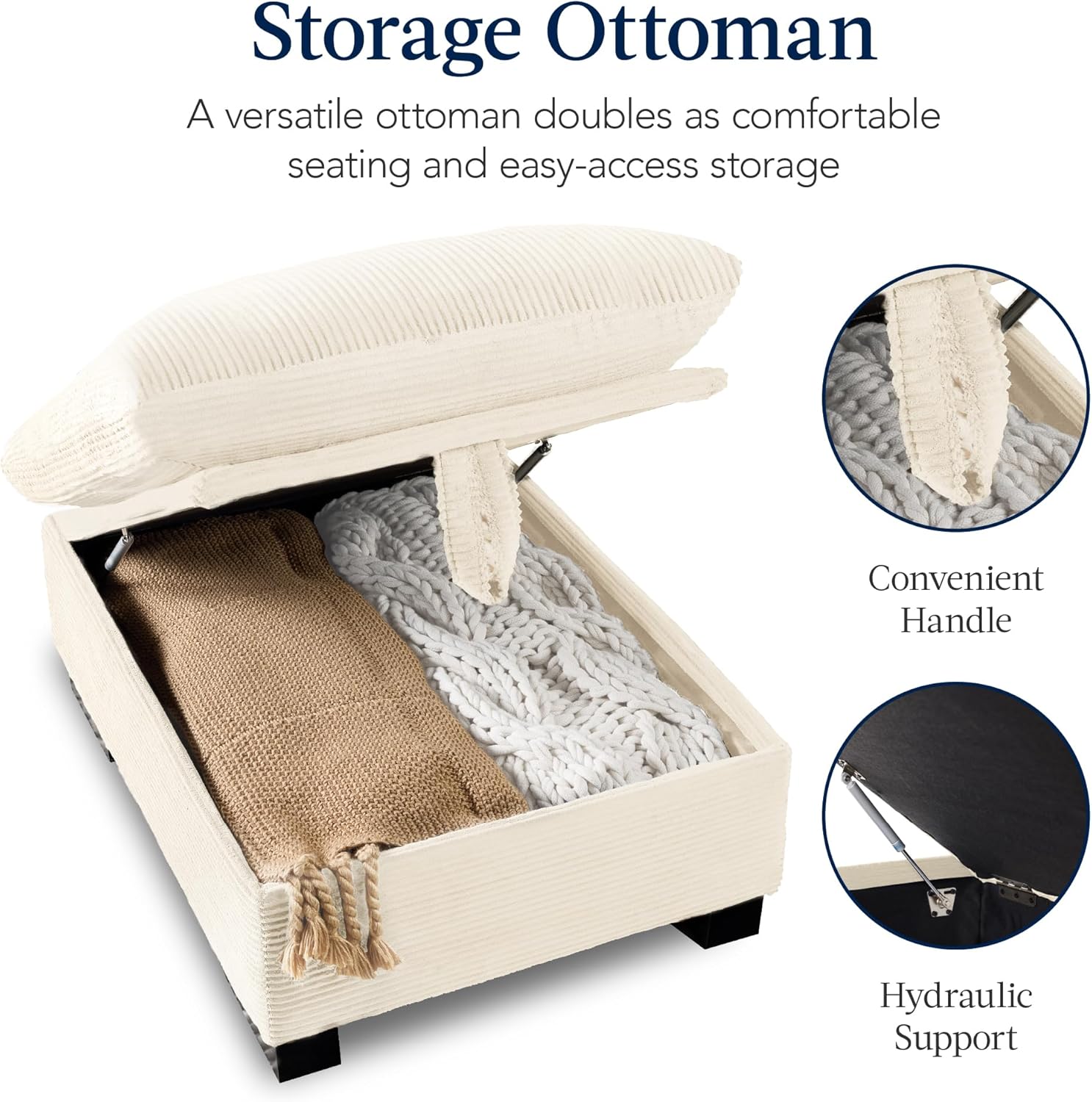 Write an article in French about: Best Choice Products 82in Modular Cloud Pillowtop Loveseat Sofa, Deep Seat Sectional Couch w/Storage Ottoman, Plush Corduroy Fabric, Real Wood Frame and Legs – Ivory In English