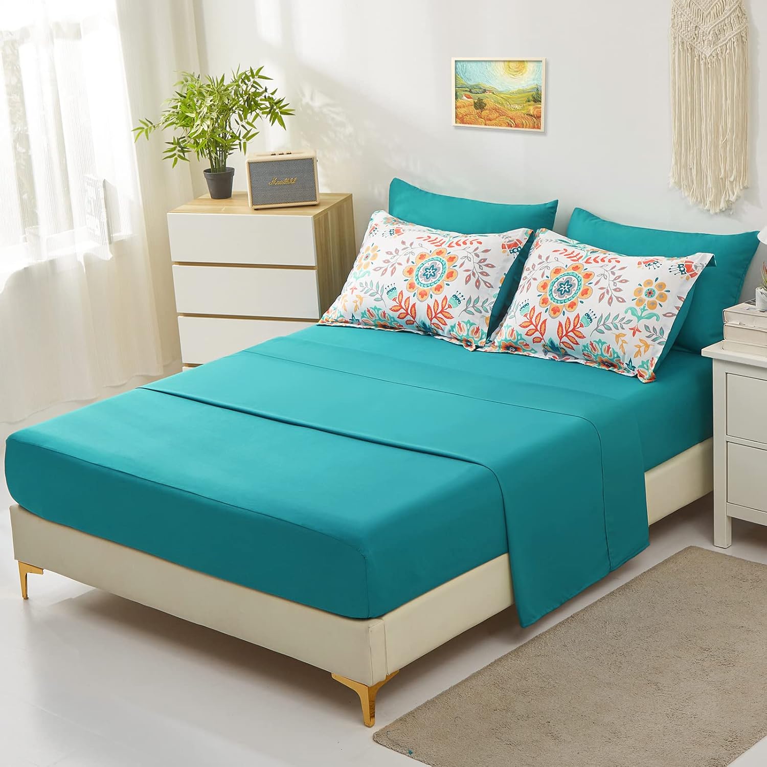 Write an article in French about: Boho Comforter Set Queen – 7 Pieces Bed in a Bag Floral Medallions Design, Bohemian Comforter Set with Sheets, Soft Microfiber Complete Bedding Sets All Season (Teal Blue, Queen) In English