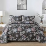 WONGS BEDDING Botanical Quilt Set Queen Size, Sage Green 3 Pieces Toile Floral Plants Printed Bedspread Bedding Set Soft Lightweight Microfiber Coverlet Set for All Season (96″x90″)