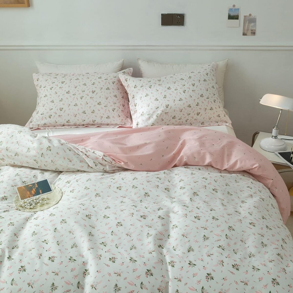 Write an article in French about: Cotton Floral Duvet Cover Queen Pink White Floral Bedding Sets Vintage Style Garden Floral Comforter Cover Boho Flower Botanical Duvet Cover Girls Women Aesthetic Queen Duvet Cover with Zipper Ties In English