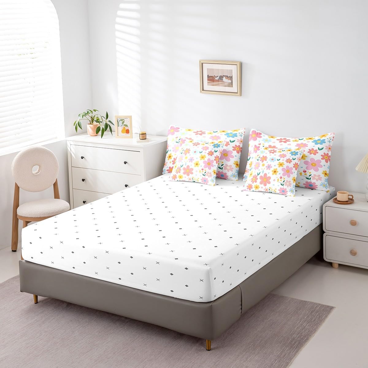 Write an article in French about: Feelyou Cute Flower 7 Piece Bedding Set Twin Size Kids Cartoon Cute Floral Bed in a Bag for Kids Girls Teens Toddler Yellow Pink Comforter Set with Sheets Kawaii Bed Set In English