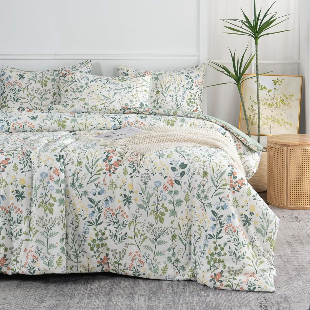 Write an article in French about: Floral Comforter Set Queen Soft Bedding Comforter Set 3 Pieces Garden Style Green Red Flower Print Botanical Flowers Comforter Set for All Seasons 1 Comforter and 2 Pillowcases (Floral, Queen) In English