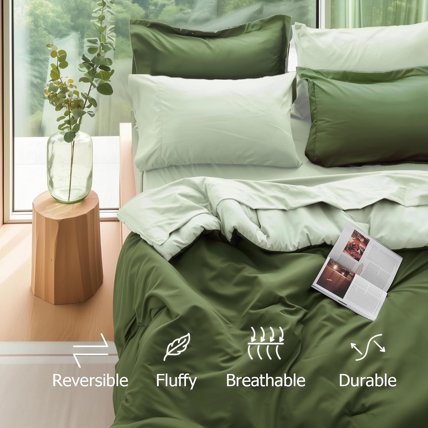 Write an article in French about: Full Size Comforter Sets 7 Pieces, Dark Green, Reversible Sage Green, Full Bedding Sets, Soft Bed in a Bag Full with Comforter, Sheets, Pillowcases & Shams, All Seasons Boho In English