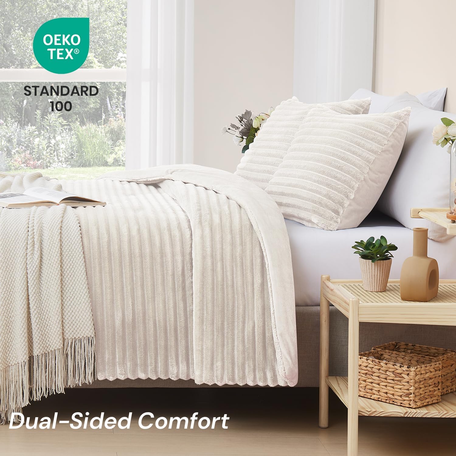 Write an article in French about: Geniospin King Size Comforter Set Ivory, Ultra-Soft Microplush Fleece Bedding Sets, Reversible 3-Piece Comforters Set for All Season, Warm & Cozy (Ivory, 102”x90”) In English