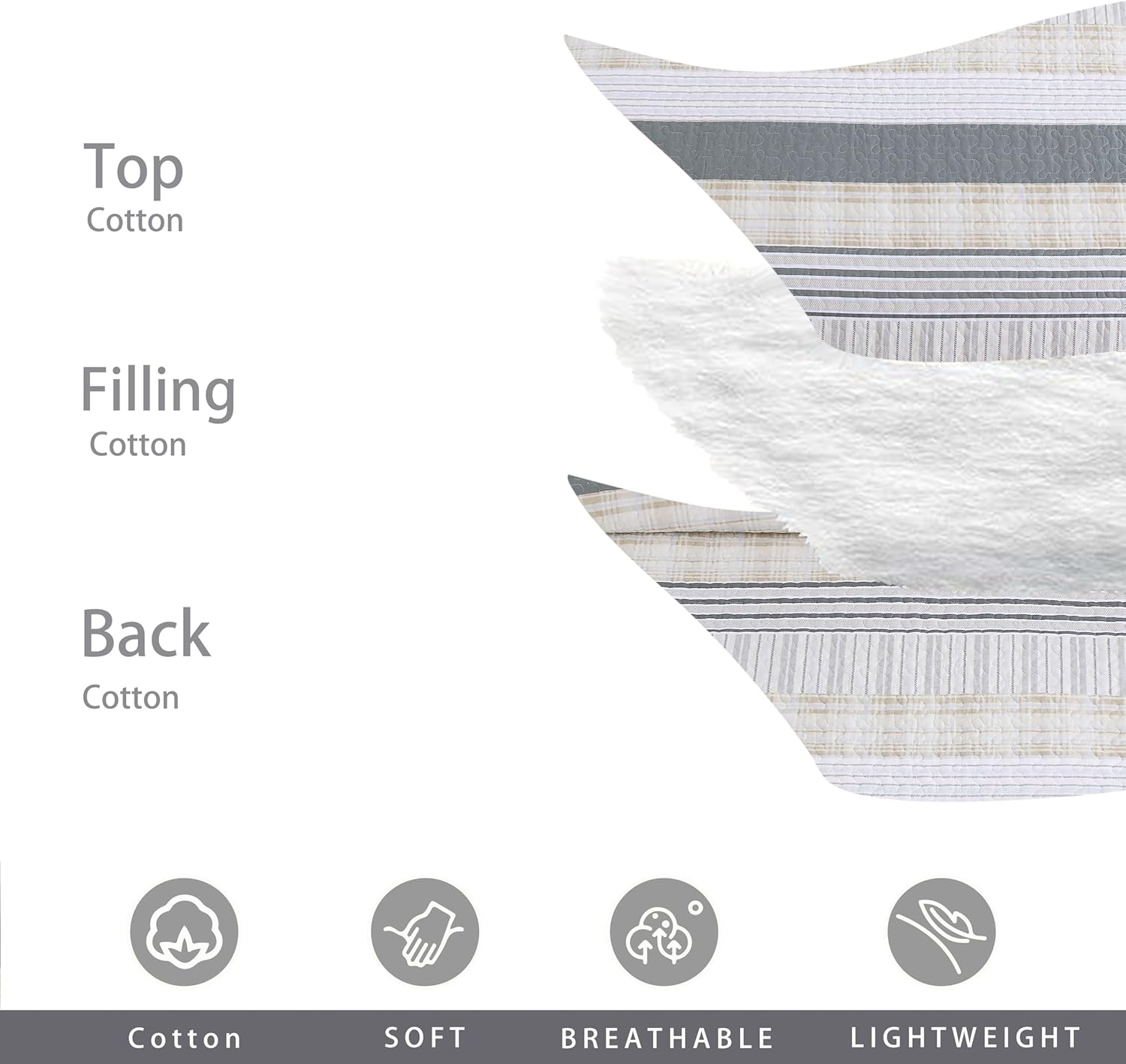 Write an article in French about: Homzard Quilts Queen Size – Cotton Queen Size Comforter Sets,Beige Grey Cotton Bedding,Striped Plaid Comforter Bedspread (90 * 98 Inches),3 Piece In English