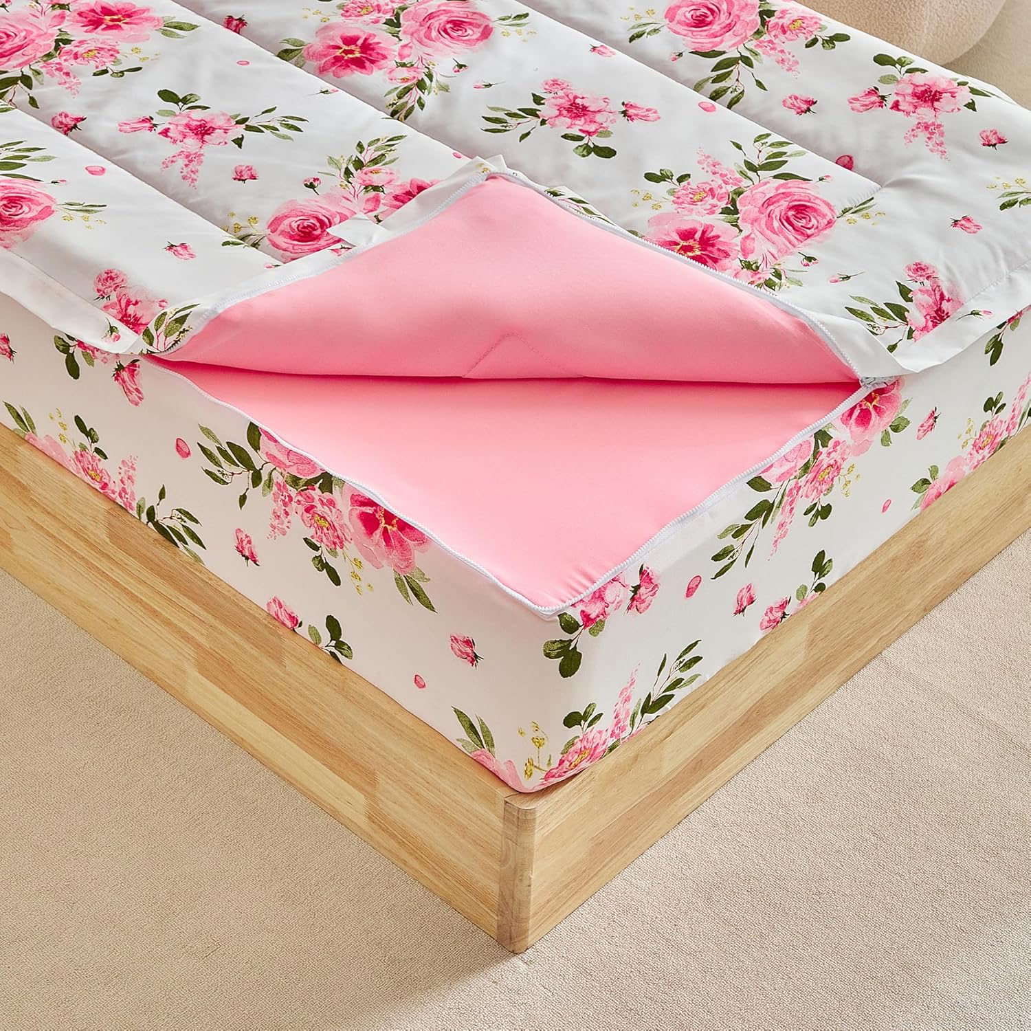 Write an article in French about: Kids Comforter Set with Zipper – 2 Pieces Twin Size Zipper Bedding Comforter Set Lightweight Microfiber Comforter Set with Fitted Sheet Pillow Covers – White Pink Flower Green Leaves for Girls In English