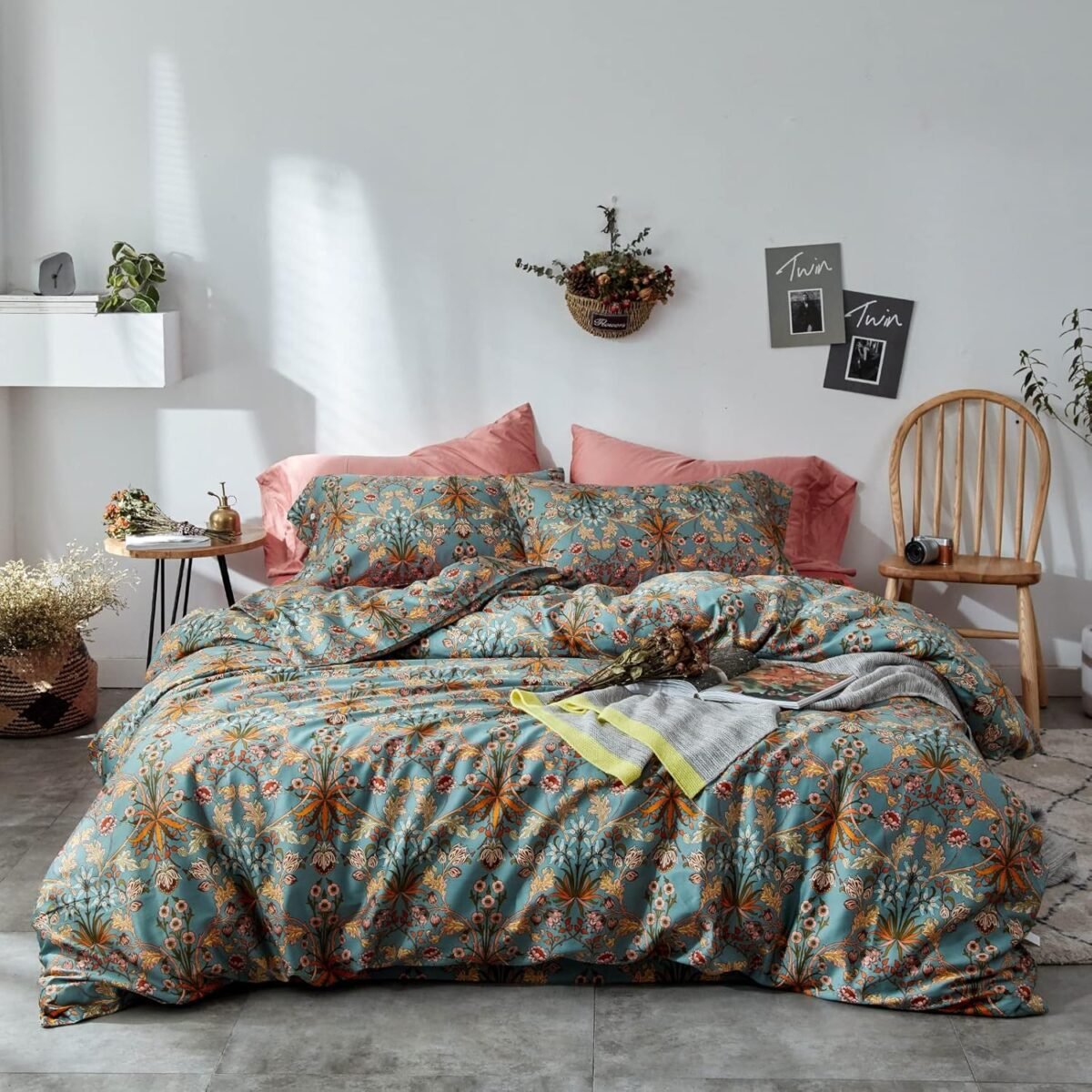 Write an article in French about: mixinni Vintage Style Garden Flower Queen Duvet Cover with Zipper Closure Soft Long Staple Percale Cotton Vibrant Pattern on Flower Bedding Quilt Cover Set(Queen, All Season) In English