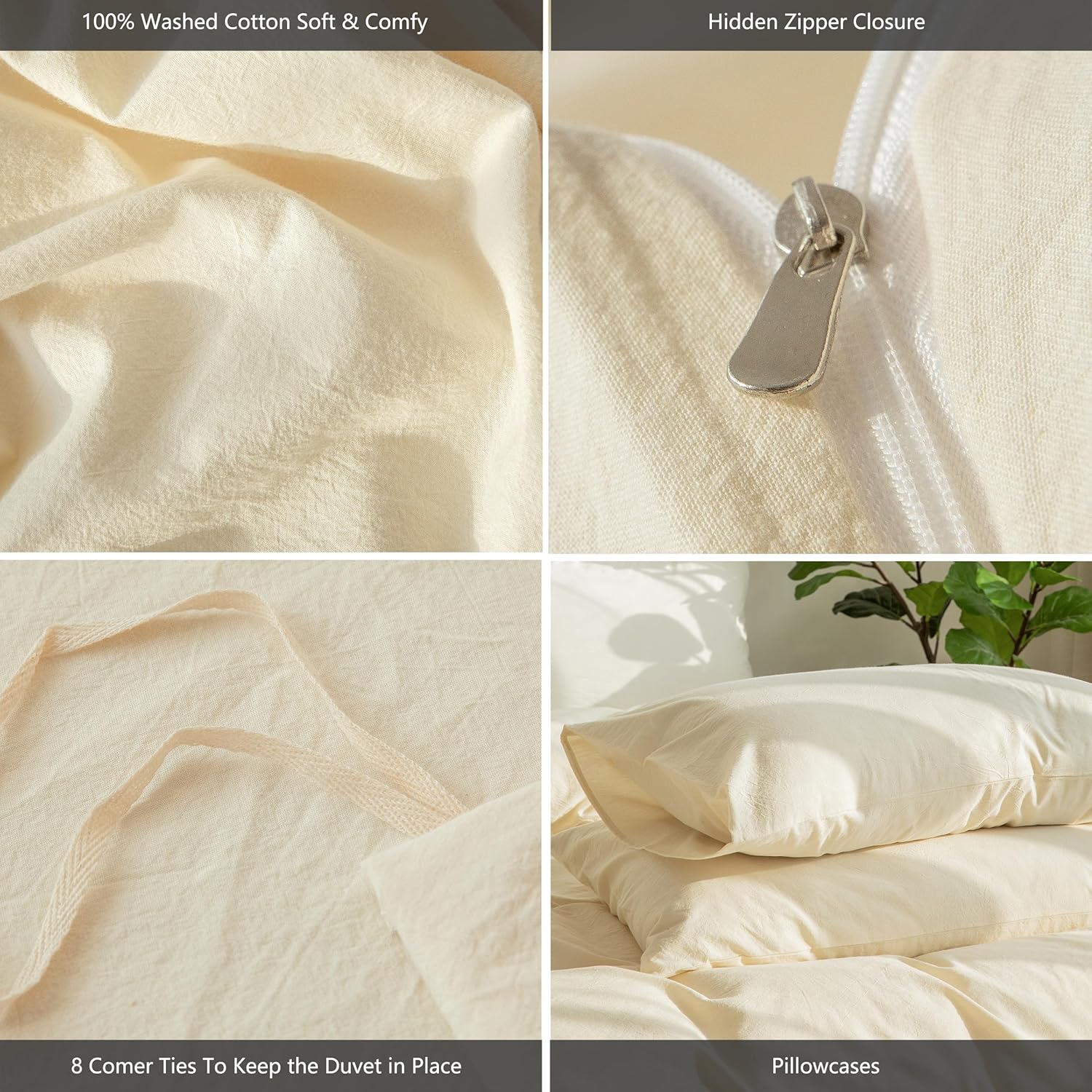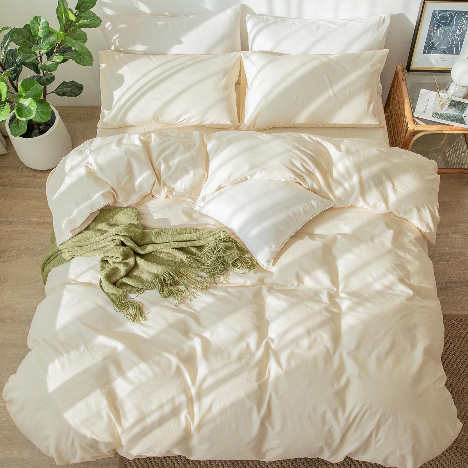 Write an article in French about: MooMee Bedding Duvet Cover Set 100% Washed Cotton Linen Like Textured Breathable Durable Soft Comfy (Solid Cream White, King 104″x90″) In English