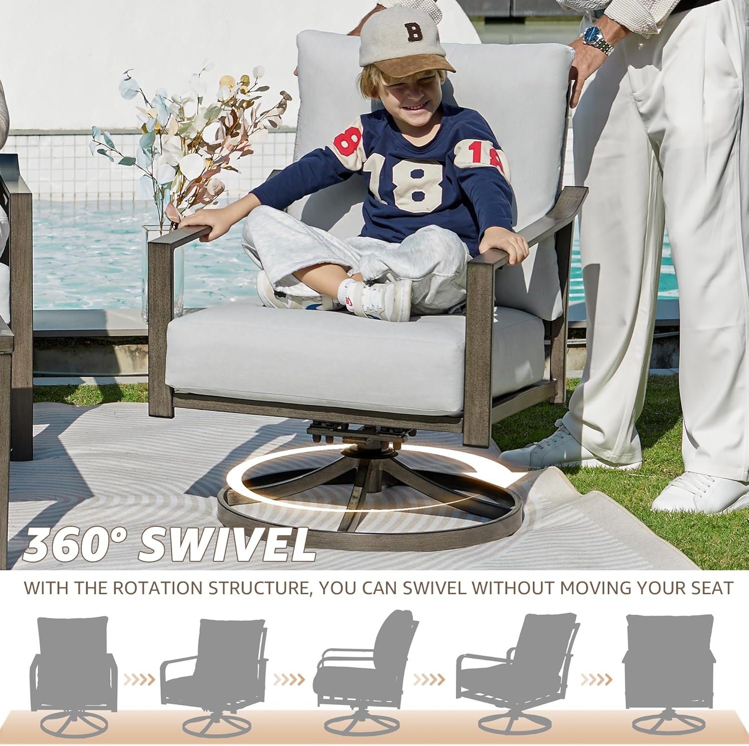 Write an article in French about: NATURAL EXPRESSIONS 4 Pieces Patio Furniture Sets, Modern Metal Outdoor Conversation Sets with High Back All Weather Hand-Woven Rope Rocking Swivel Chairs, Loveseat, Metal Table, 5.5″ Thick Cushions In English