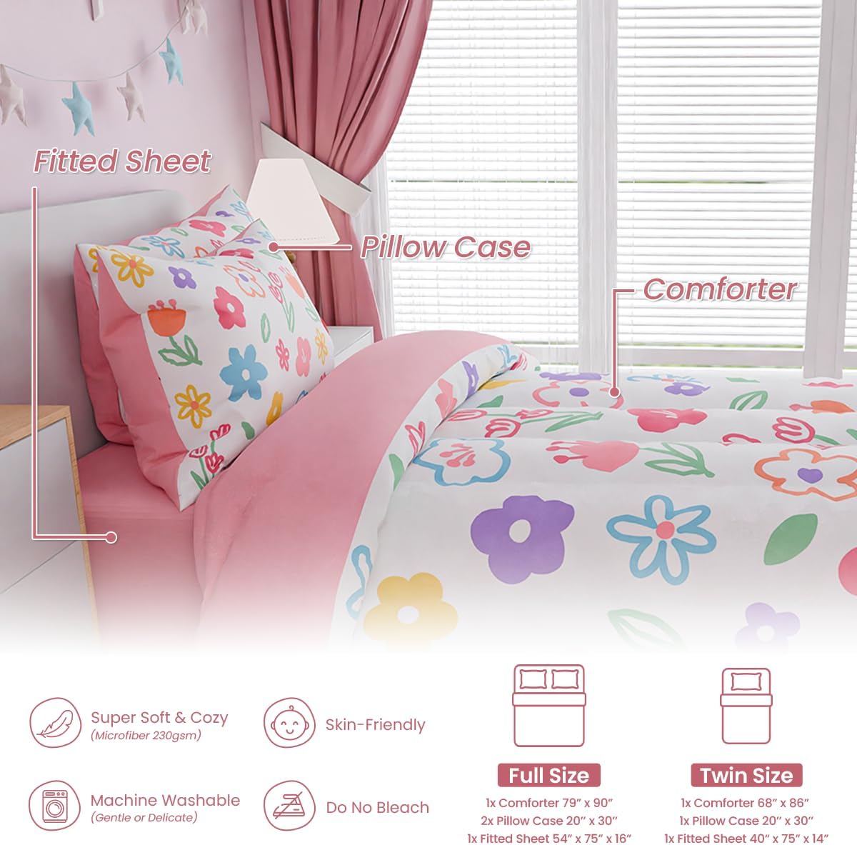Write an article in French about: SANDJEST Floral Twin Bedding Sets for Girl, Ultra Soft Microfiber Comforter Bed Set with 3-Pieces, Flower Comforters Sets for Kids Children Girl Teen Tween Bedroom Decor In English