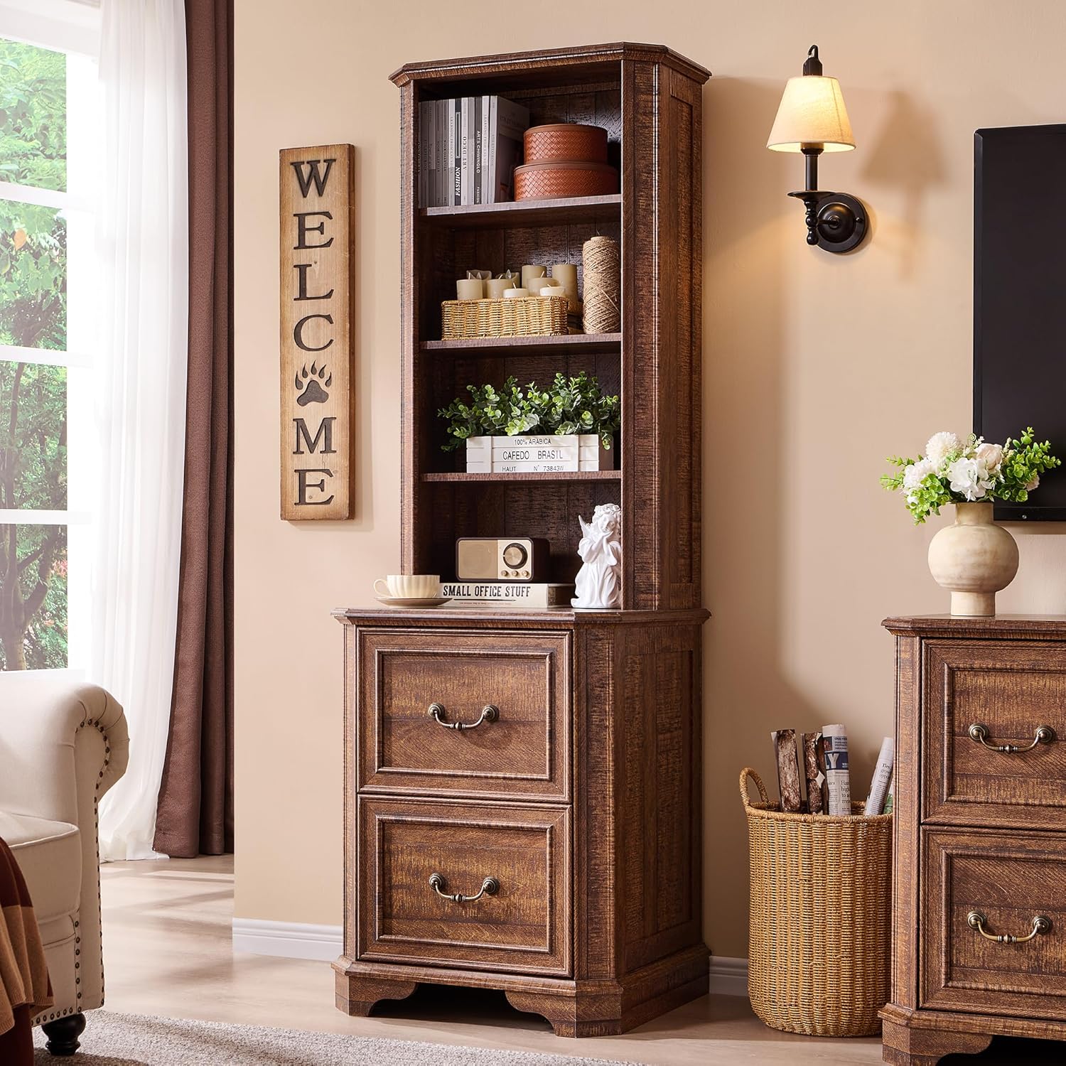 Write an article in French about: T4TREAM 6-Tier Bookcase with 2 File Drawers, 72″ Tall Farmhouse Bookshelf with Storage & Adjustable Shelves, Wooden Floor Standing Display Book Shelf Organizer for Home Office, Reclaimed Barnwood In English