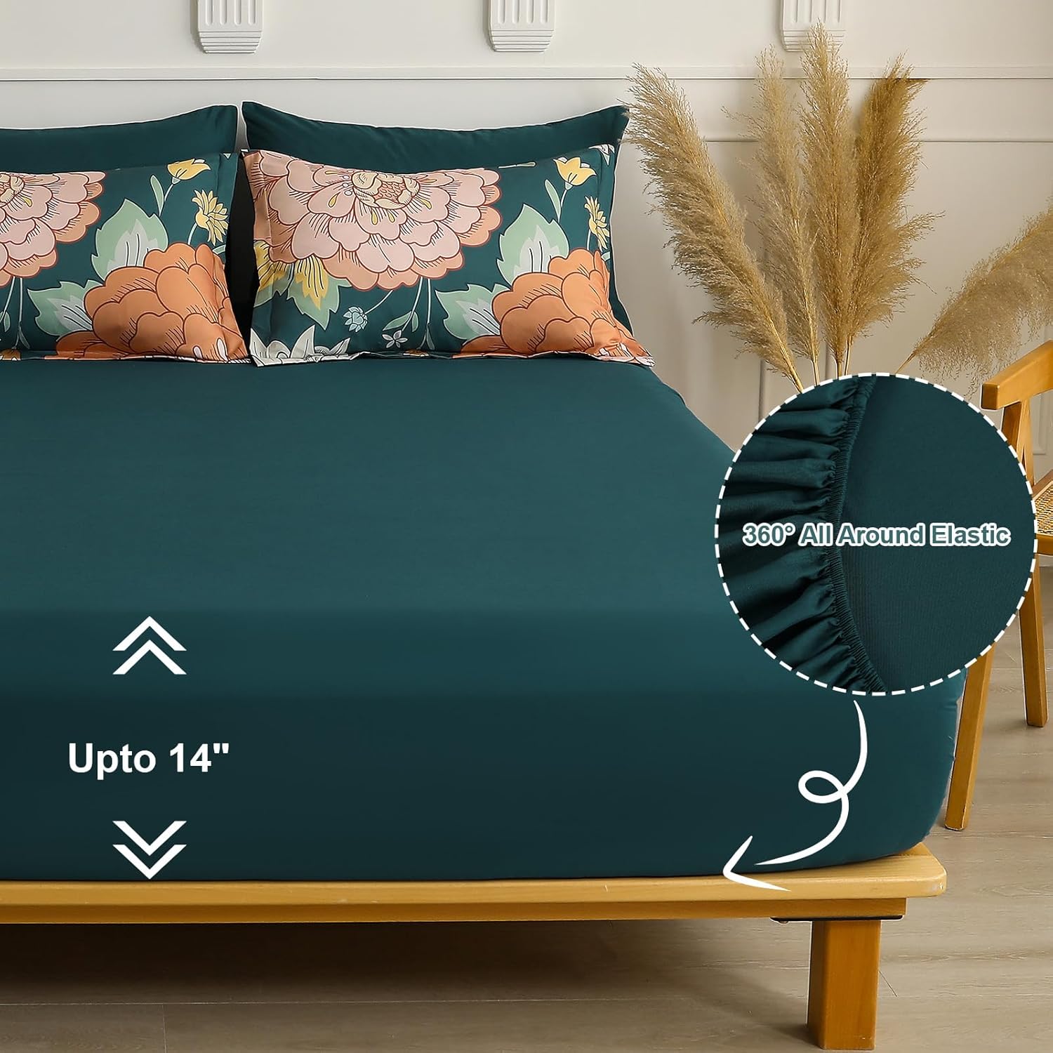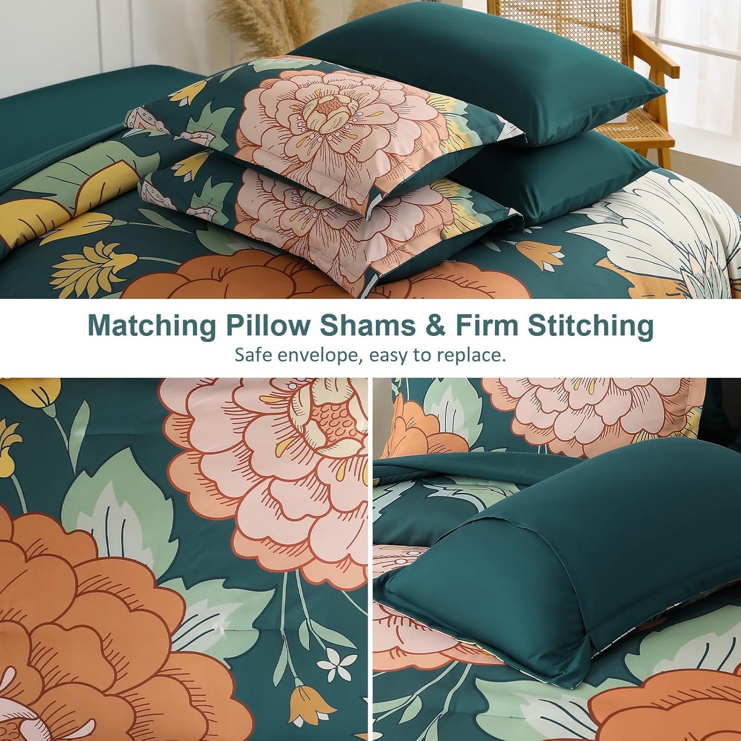 Write an article in French about: Teal Floral Comforter Set Queen Size 7 Piece, Boho Flower Bedding Set with Comforter, Sheets, Pillowcases, Floral Quilt Set with Botanical Prints, Soft Microfiber Flower Bed in a Bag for Bedroom, Dorm In English