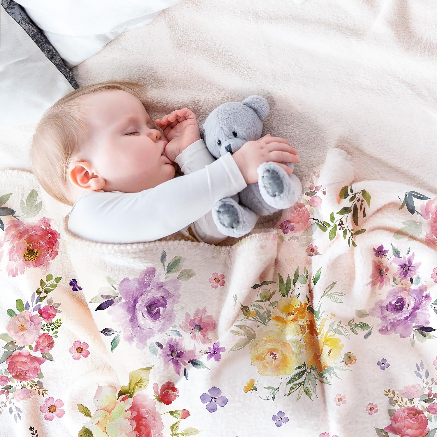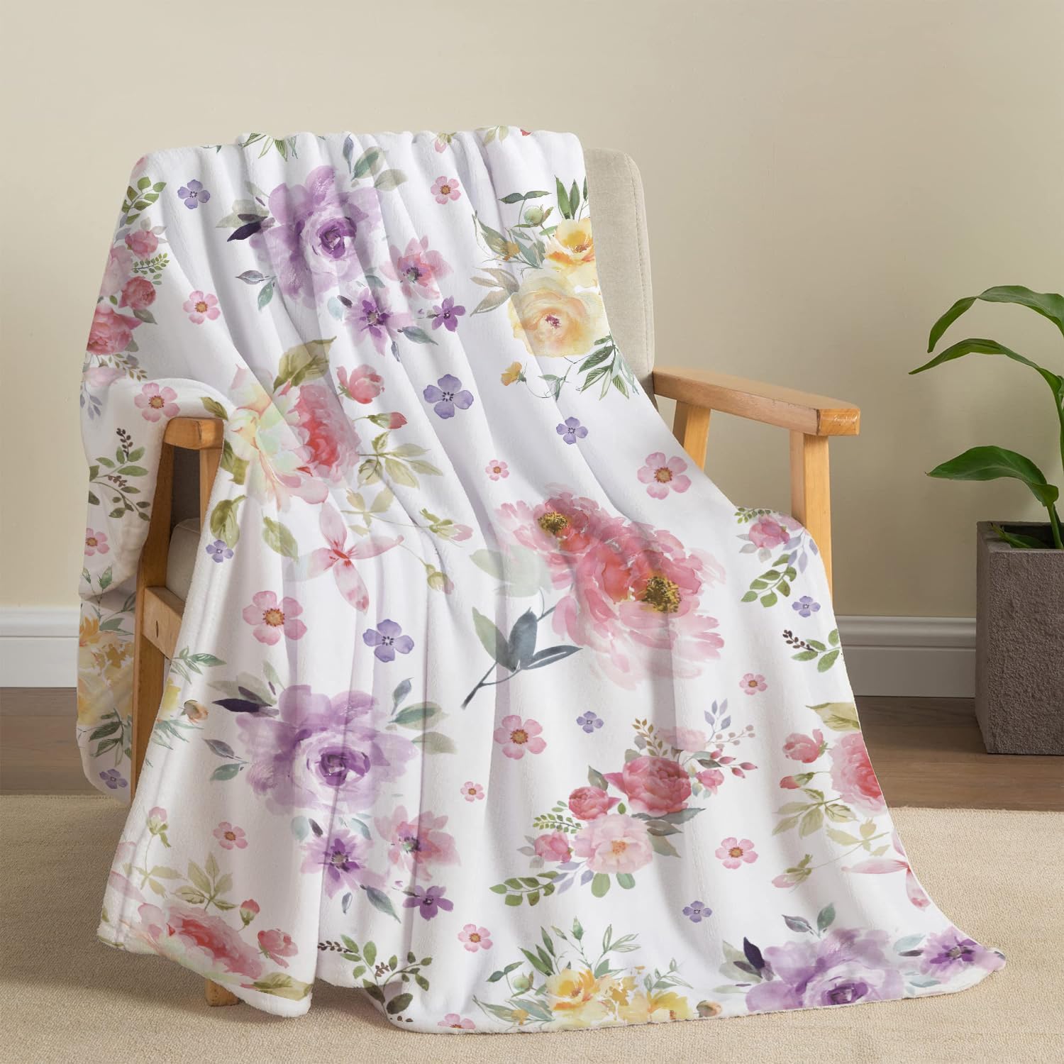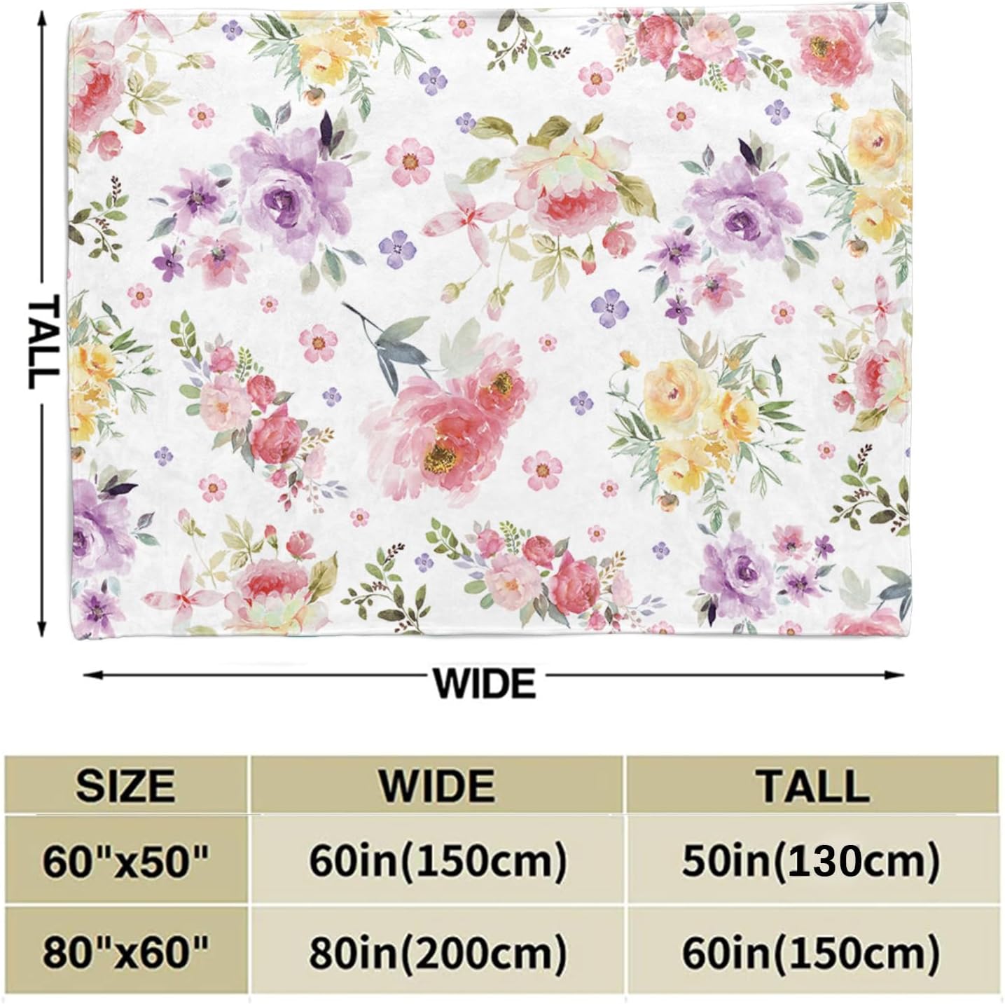 Tupmnbry Watercolor Flower Throw Blanket Colorful Botanical Floral Printed Blanket Super Soft Flannel Throw Blankets Lightweight Fluffy Plush Fuzzy Bed Blankets for Bedding Sofa 50″X60″