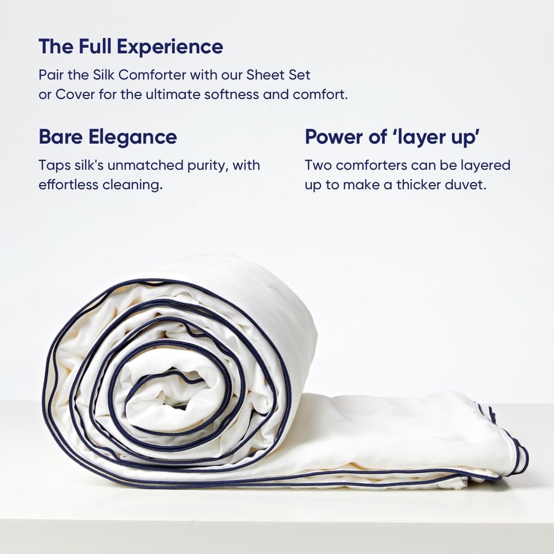 Write an article in French about: Vesta All Season Silk Comforter, Quilt and Duvet Insert for Hot Sleepers, 100% Silk Fill with 100% Cotton Shell, Luxuriously Soft, Moisture-Wicking, Queen Size (Mirage White, 1.7kg, 3.85lbs) In English