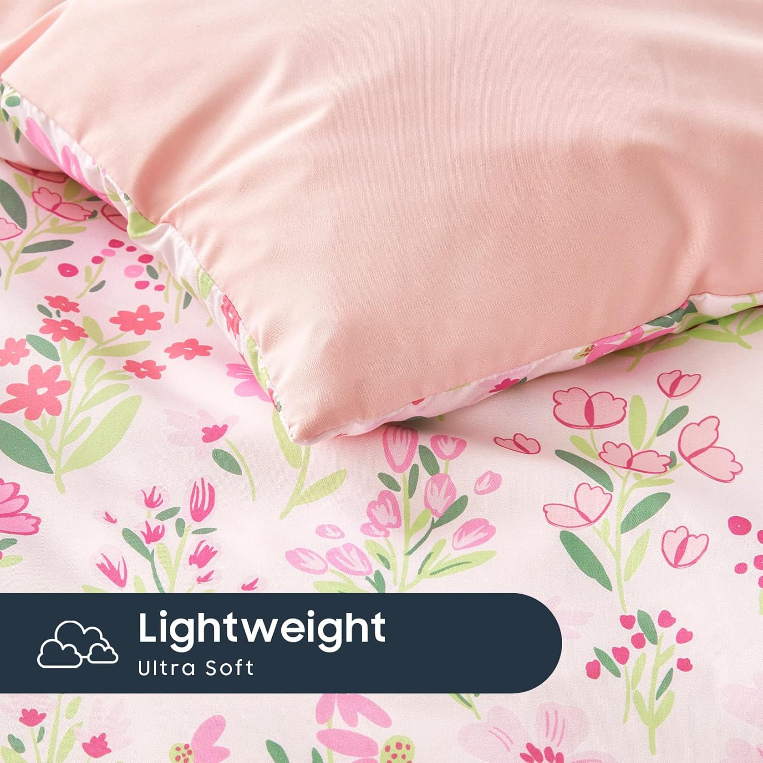 Write an article in French about: Wake In Cloud – Floral Bedding Set for Girls, Cute Colorful Botanical Flowers Patterned Soft Lightweight Comforter Set with Sheets, 5 Pieces Kids Bed in a Bag, Light Pink, Twin Size In English