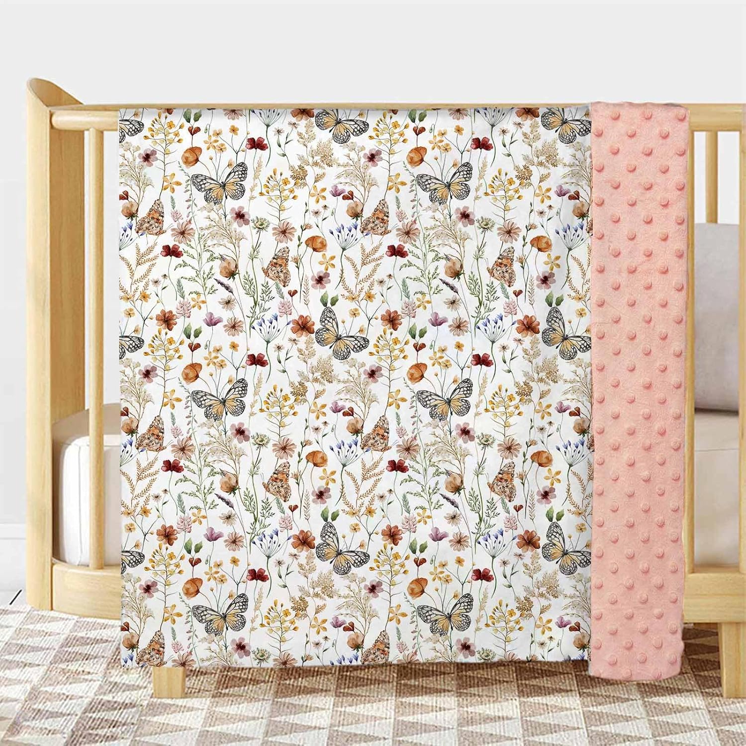 Write an article in French about: Wildflower Butterfly Baby Blanket for Girls, Soft Double Layer Minky with Dotted Backing, Flower Garden Theme Toddler Nursery, Newborn Infant Toddler Crib Bedding, Receiving Blankets, 30″x40″ In English