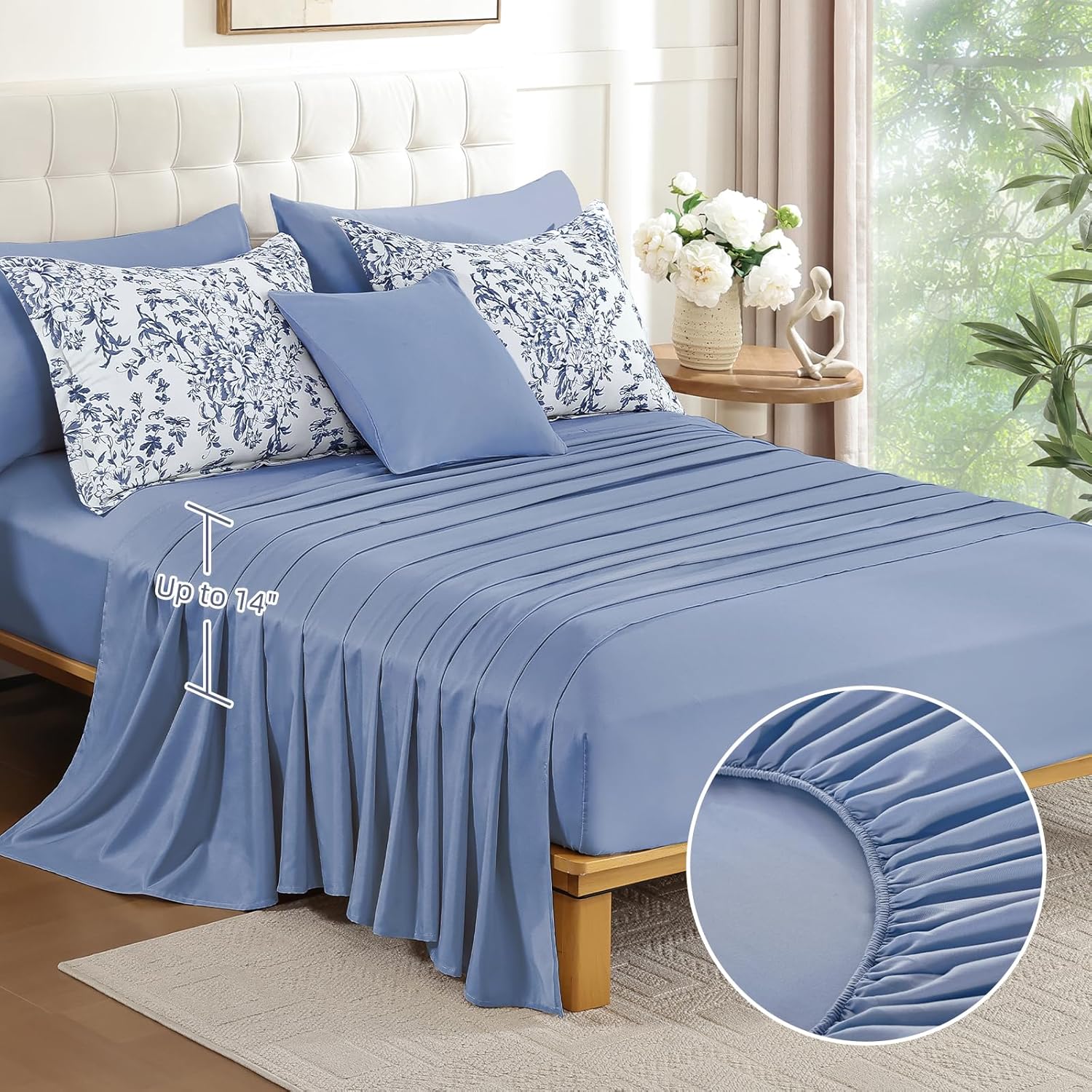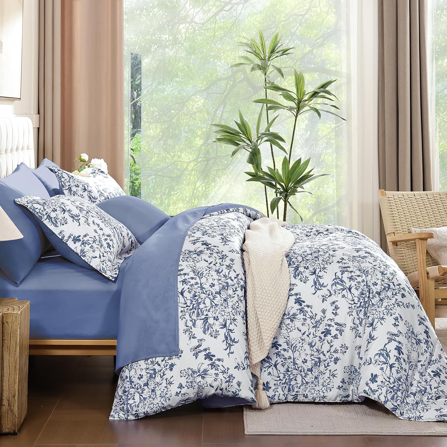 Write an article in French about: WONGS BEDDING Blue Floral Comforter Set King Size, 8 Pieces Flower Botanical Bed in a Bag Bedding Set, Soft Microfiber Comforter, Sheets, Pillowcases & Shams (90″x104″) In English