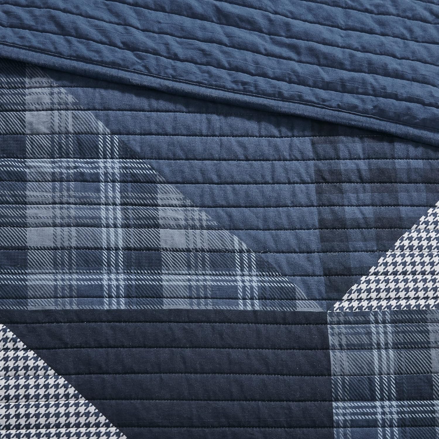 Write an article in French about: Woolrich Reversible Quilt Set – Cottage Styling Reversed to Solid Color, All Season Lightweight Coverlet, Cozy Bedding Layer, Matching Shams, Oversized King/Cal King, Olsen Geometric Blue In English