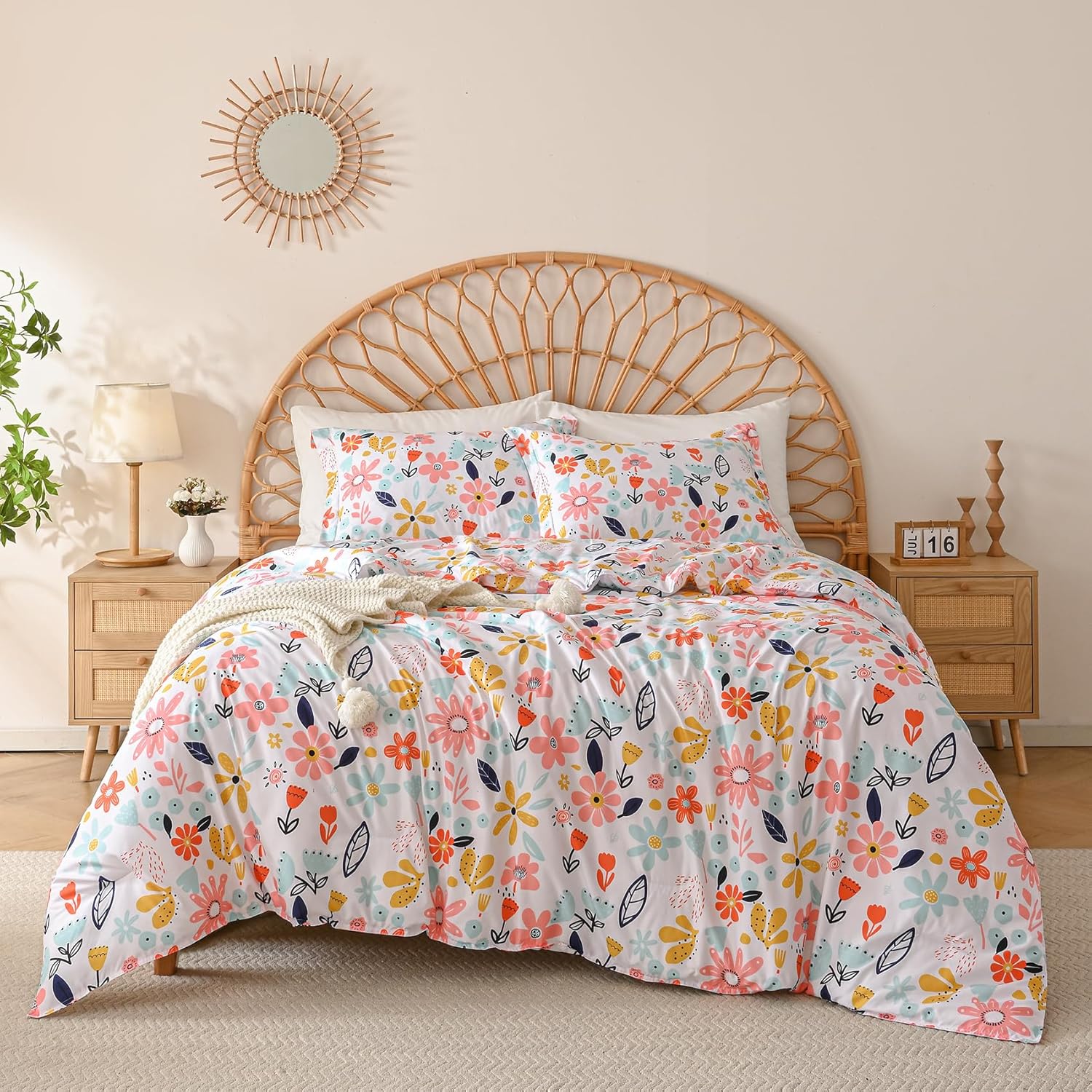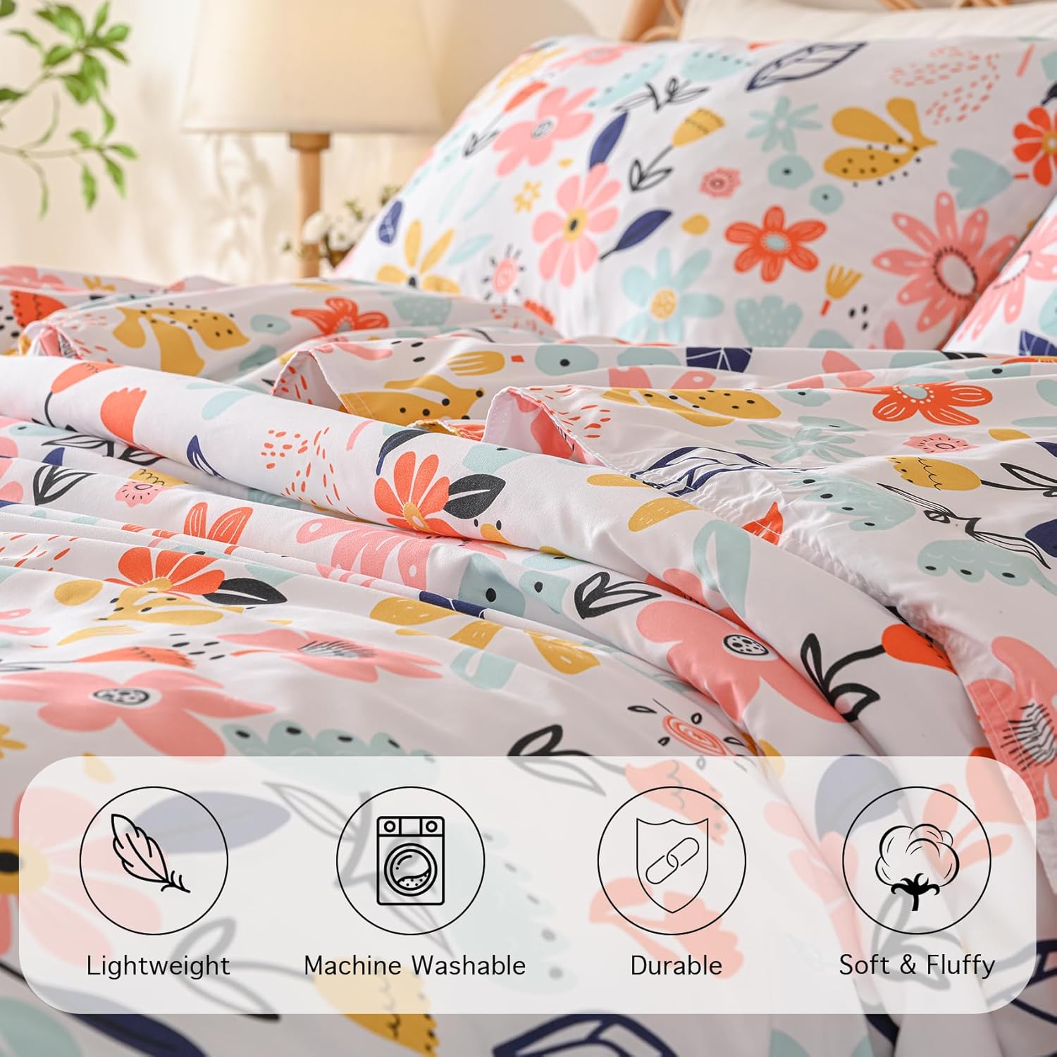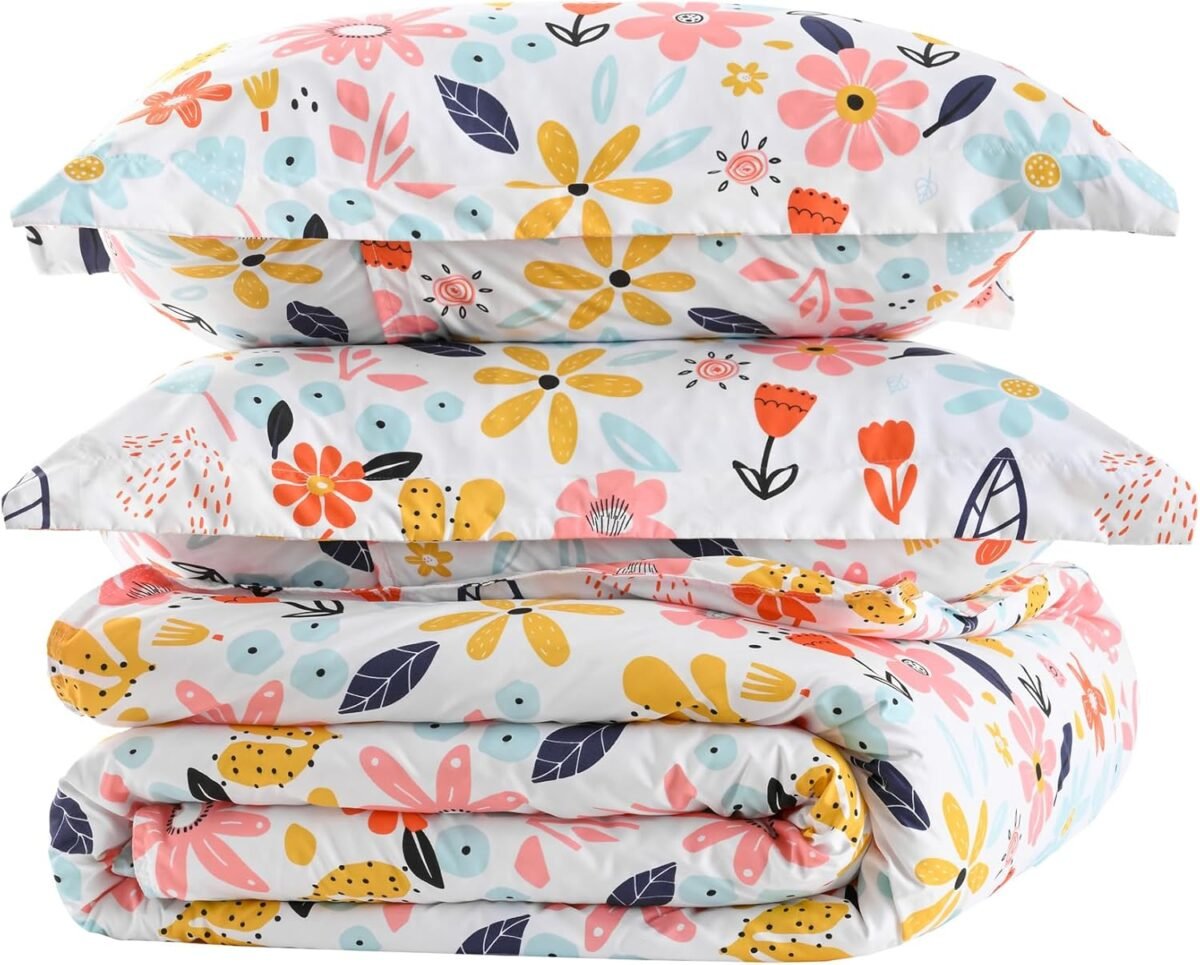 Write an article in French about: Yibeizi Floral Comforter Set for Girls Full Size, Kids Cute Patterned Bedding Set with Pillow Sham, Lightweight Soft Breathable Machine Washable Quilt Bed Comforter Set 3 Piece In English