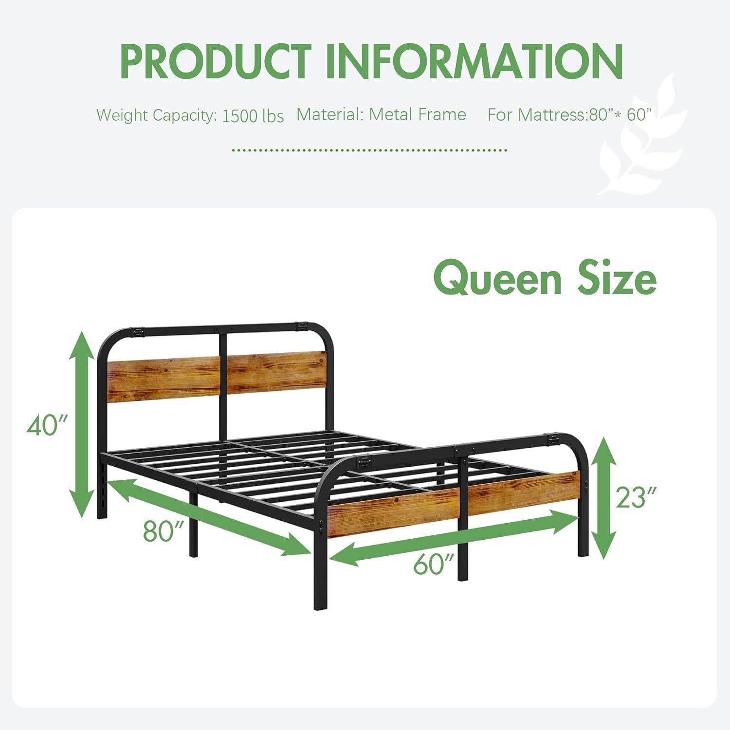 Write an article in French about: ZIYOO Industrial Style Metal Queen Bed Frame with Solid Wood Headboard and Footboard, 14 Inch High Heay Duty Steel Slats Support No Box Spring Needed,Easy Assembly Structure In English